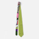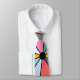 Esta gravata tem um desenho abstrato que é feito de nove quadrados com um círculo e "raios" saindo do círculo em muitas cores diferentes.