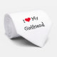 A cor branca do fundo é personalizável. A cor vermelha da forma cardíaca é personalizável. Você também pode alterar a cor preta e o estilo da fonte do design. Uma gravata de pescoço novidade para a cara que ama a namorada.