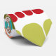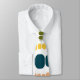 Esta gravata tem um design moderno século médio de linhas horizontais de retângulos arredondados em tamanho crescente e decrescente em cores retrorreflectoras de vermelho, verde, azul, amarelo, laranja e marrom em um campo de branco.