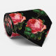 Design floral elegante, colorido, rosas de repolho cor-de-rosa vermelho com folhas verdes sobre fundo preto.