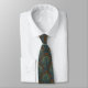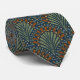 Esta gravata apresenta um padrão boêmico rústico de vieiras em verde-sábio, ferrugem e azul-claro sobre um fundo azul-marinho.