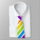 Esta gravata apresenta faixas diagonais brancas alternando com cores brilhantes e arco-íris.