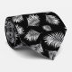 Teste padrão branco em folha de palmeira tropical no fundo preto.