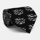 Essa nova gravata de Halloween é coberta por uma coleção de imagens simples de morcegos voando juntos em uma nuvem. Os morcegos são brancos e a cor de fundo da gravata é preta.