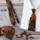 Gravata artística apresentando um padrão temático de café com textos estilizados de "café" em um feijão com couro falso. Você pode escalar ou girar o padrão se quiser.