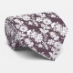 Esta gravata de padrinho de casamento de pinça apresenta um padrão floral branco sobre um fundo roxo de mauve escuro tenso.