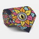 Uma amarração espessa de olho com uma arte digital de um globo ocular estranho com íris de réptil e um aluno cercado de pétalas coloridas. Esta ilustração surreal maluca tem cores amarelas, laranja, corais, rosa e azuis-claro divertidas com elementos decorativos sobre o normal fundo azul escuro e, sendo estranha e escura, é excelente para o Dia das Bruxas.