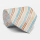 Esta gravata apresenta faixas de cor aquosa em turquesa, ferrugem e damasco em creme.