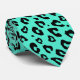 Gravata verde menta com rosetas de leopardo de manchas pretas. Design de cor personalizado com estampa de animal exótico.