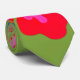 Gravata com grande hibisco com duas flores. Uma flor azul e uma rosa sobre um fundo verde tropical.