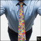 Subject: A necktie featuring a dense, highly saturated abstract pattern.