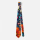 Uma representação artística vibrante de várias flores no florescimento do cheio, mostrando um espantoso conjunto de cores que incluem pétalas laranja, amarela, azul e rosa contra um fundo profundo e texturizado, complementado por folhas e flores pequenas para uma cena de jardim harmoniosa e viva