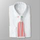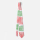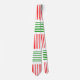Esta gravata tem uma design moderna do século médio que se parece com uma tecelagem com linhas vermelhas e verdes num campo de branco.