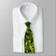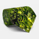Volte para um paraíso pré-histórico! Esta bela gravata de arte convida-o a entrar num cenário de floresta de luz solar e sombra. Frangos verdes e amarelos selvagens tapetam o chão da floresta em um padrão de abstrato.