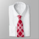 A gravata do pescoço deste homem tem um padrão de Natal de uma xadrez vermelha de floco de neve. Há duas cores de vermelho com branco. Este padrão é excelente para toda a temporada de festas. Você pode fazer o padrão nesta gravata maior ou menor. Um excelente de gravata para vestir à sua próxima festa de Natal.