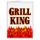 Churrasco engraçado do Grill King dizendo em uma fonte flamejante ocidental para cozinheiros e cozinheiros. Com arte gráfica de chamas vermelhas e laranja no fundo do design. Outro original da MomsRetro.