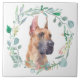 Um retrato de aquarela de uma bela dentro de grande dane, uma coroa azul verde de folha, é a característica deste azulejo decorativo e útil. Perfeito para qualquer um que ama um dinamarquês.