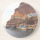 Porto da encosta de Santorini, ilha grega nas Cíclades, porta copos de pedra redonda.