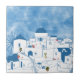 Uma bela ilustração aquática da paisagem e arquitetura da Grécia Santorini. Um design com tema azul e branco, com uma bela vista das ilhas gregas. Um design perfeito para quem ama viagem, vai de férias e ama visitar destinos mediterrânicos como Oia e Fira de Santorini, Grécia.
