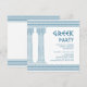 Greek retirement party invitation featuring minimalist temple pillars and a blue Greek meander pattern. Customizable product for a memorable celebration. Perfect for your Ancient Greece or Ancient Rome-themed party.
