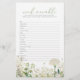Surpresa e encantadora a mãe a ser com o encantador Bebê Verde no Jogo Bloom Wildflower Word Scramble. Este maravilhoso jogo de chá de fraldas contém palavras temerárias cercadas por designs florais vintage para que os convidados se desembaraçem. Vejam seus rostos se iluminarem à medida que desembaralham palavras como fralda, troca e garrafa. A bela trabalho de arte faz deste jogo uma manutenção especial para o convidado de honra. Traga um toque da beleza da natureza para o seu chá de fraldas com esta salva de palavras. A futura mãe e os hóspedes têm certeza de que vão se divertir!