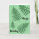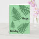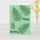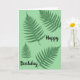 Uma simples folhagem e botânica inspiraram um cartão de aniversário em cor verde com folhas de plantas de samambaia.