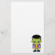 Papel de papelaria com uma imagem divertida do Halloween com um monstro Frankenstein verde.