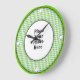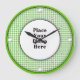 Moldura redonda de Gingham Verde atrás das marcas de hora, Coloque sua foto aqui, relógio personalizado, sua foto aparecerá atrás da moldura redonda para um olhar verdadeiramente profissional - pontos de ouro branco para marcas de hora - 12,3,6 e 9 pontos maiores, em um padrão em forma de diamante parece excelente em relógios redondos ou quadrados
