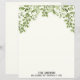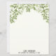 Sage green leaves and berries on a pale cornsilk-colored background makes a beautiful arched border at the top of this modern, and stylish stationery.