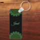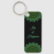 Personalize este Chaveiro de Mandala Verde Único "Um dos Tipos"! Ela apresenta uma bela Design geométrica de Mandala Verde.... num fundo negro! Um Mandala é um Símbolo Espiritual e Ritual... Transformando o Universo de Um de Sofrimento em Um de Alegria e Felicidade! Design gráfico do artista Kerry Miller.