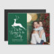 Um veado branco elegante salta sobre as palavras de Natal Esta é a Estação para ser Jolly neste lindo cartão de ímã de férias. elegância clássica com uma rena bonito sobre caligrafia deslumbrante e foto de sua família enchendo a frente desses cartões magnéticos verdes festivos.