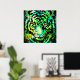 Green Tiger Head - Big Cat Tiger Poster Square with Orange Eyes by Tigazprint