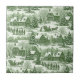 A vintage-style seamless pattern ceramic tile depicting a peaceful winter village scene in soft green. Inspired by classic toile designs, it captures snowy cottages, pine trees, sleigh rides, and timeless holiday charm. Ideal for Christmas themes, nostalgic, and elegant vintage countryside aesthetic.