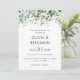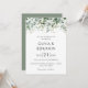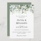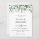 Design de convite de casamento, com eucalipto verde borda de folha, num fundo branco, facilmente personalizado.