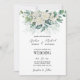Greenery eucalyptus White roses modelo de convite para casamento com QR RSVP no verso.