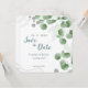 Calor de Cama Verde Eucalyptus deixa casamento Salve o convite. Anuncie seu grande dia em estilo com este elegante Greenery Eucalyptus deixa casamento Salve o cartão de Data. Apresentando um design botânico moderno com uma pelagem de eucalipto de cor aquosa, este convite dá o tom perfeito para um tema de casamento inspirado na natureza, jardim ou minimalista. Bastante desenhada com tons verdes macios e folhas delicadas, esta carta oferece uma sensação fresca e romântica que combina com primavera, verão ou casamentos ao ar livre. Personalize com seus nomes, data de casamento, local e uma mensagem pessoal para criar uma primeira impressão significativa que seus convidados gostarão. Impresso em papel de alta qualidade com impressão vibrante e profissional, esta placa Save the Date é na moda e durável — ideal para envio ou entrega manual. Escolha dentre vários tipos e tamanhos de papel para melhor adequá-los à sua visão e estética de casamento. Quer você esteja planejando um casamento rústico na floresta, uma celebração de vinhedo, ou uma cerimônia íntima de quintal, esse eucalipto "Salvar a data" complementa perfeitamente sua decoração natural e elegante. Palavras-chave: casamento verde salve a data, convite de casamento para eucaliptos, cartão de casamento botânico, design de casamento verde minimalista, folhas d'água salvos a data, papelaria de casamento com temas naturais, anúncio de casamento personalizado, casamento ao ar livre, salve a data Faça-o realmente seu—clique em "Personalizar" para começar a desenhar sua papelaria de casamento de tipo único hoje! Fique à vontade para entrar em contato comigo para obter mais informações sobre a personalização em mypaperlove2021@gmail.com