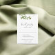 Apresentando nosso cartão RSVP de casamento exclusivo, onde a elegância do roteiro moderno encontra o charme de eterno de uma fonte serif. Seus hóspedes serão recebidos com um convite sincero para responder, maravilhosamente colocado contra um pano de fundo de intrincado enquadramento geométrico. E completar esta design requintada? Folhas deliciosas de aquarela verde e eucalipto que dançam graciosamente em torno do perímetro da carta, combinando perfeitamente a beleza da natureza com a sofisticação contemporânea. Este cartão não é apenas um convite — é uma declaração.