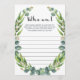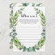Você está procurando um jogo divertido de quebra-gelo para jogar no seu chá de fraldas? Jogue Quem sou eu com esses cartões de jogo de eucalipto maravilhosos com folhas de aquarela. É a adição perfeita a qualquer chá de fraldas neutro e com certeza será um sucesso para a sua festa! Deixem seus convidados chás de fraldas anotar uma memória pessoal que eles têm com as mamães a serem. Quando todos tiverem listado uma memória, leia-a em voz alta e deixe a mãe adivinhar com quem ela tem a memória. Se ela não se lembrar, o convidado vai ganhar!