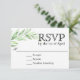Um cartão RSVP de casamento contemporâneo que apresenta um som verde de louros em aquarelas delicadas com espaço para seus convidados de casamento responderem ao seu convite. Insira a data de resposta necessária no lugar do texto de amostra mostrado. Esta placa RSVP coordena com outros produtos na suíte "Greenery Laurel Wreath Watercolor Wedding".