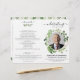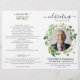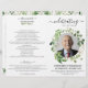 Este programa dobrado apresenta uma elegante coroa verde e folhas botânicas de eucalipto. Você pode personalizar com uma foto de seu ente querido e informações do programa sobre o funeral/memorial. Você pode personalizar o programa de qualquer maneira que você gostaria de lembrar e honrar a memória de seu ente querido.