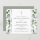 Celebre a Primeira Comunhão do seu filho em estilo com nossos convites em papel personalizáveis com um belo crucifixo de ouro e uma elegante folhagem de eucalipto em um fundo branco nítido. Estes convites são perfeitos para convidar seus entes queridos para este evento especial de marco. Nossos convites são impressos em papel de barato, garantindo que você possa convidar todos os seus convidados sem quebrar o banco. Com opções fáceis de personalização, você pode adicionar o nome do seu filho e a data, hora e local do evento. Torne a Primeira Comunhão do seu filho memorável com nossos belos e baratos convites.