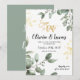 Uma elegante salva o cartão de data que contém verde-aquarela e sotaques sutis de ouro. A design botânica moderna cria um estilo eterno e sofisticado, perfeito para casais que querem uma nova aparência natural para sua papelaria de casamento.