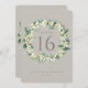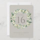 Um cartão de número de mesa de casamento verde e de dupla face, com morangos pintados manualmente e eucalipto dispostos em uma bela coroa botânica. Todo o texto é totalmente editável. Outros designs, produtos de números de tabela e itens de coordenação estão disponíveis na minha loja.