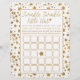 Estes cartões de bingo são perfeitos para qualquer pessoa que tenha uma festa de revelação de gênero este ano. O design apresenta estrelas de efeito de brilho dourado com a tipografia de fontes do script "brilho, estrela pequena cintilante" e a fácil personalização da redação do modelo. Basta incluir esses cartões de bingo quando você enviar seus convites de revelação de gênero correspondentes, seus hóspedes podem então preencher cada quadrado com qualquer presente que eles pensam que o bebê receberá no chá, cinco em qualquer direção ganham um prêmio!