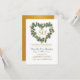 Um coração de aquarela feito de hera, eucalipto, minúsculas flores brancas e laços de fita dourada foi projetado para este convite de 50 anos de aniversário de casamento. O verso tem um acabamento metálico dourado com espaço para digitar mais mensagem e nomes, se necessário. Perfeito para uma tarde divertida.