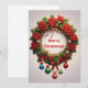 Grinalda de Natal brilhante e alegre adornada com poinsétias vibrantes, ornamentos cintilantes, flocos de neve e fitas em um fundo quente e suave simbolizando alegria e celebrações de Natal.