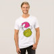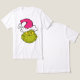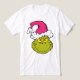 This fantastic, bold illustration is a close-up portrait of the Grinch in full mischievous mode! He has his signature sly grin and bright yellow eyes, but his look is updated with a large, fluffy Santa hat in a fun, unexpected pink/fuchsia color instead of the traditional red. This graphic is perfect for anyone who loves the holidays but embraces a non-traditional, delightfully grumpy, and colorful style!