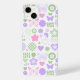 Groovy Good Vibes Y2K Butterfly Modern Girl iPhone Smart Capa de telefone apresenta um lindo e divertido padrão do y2k moderno para borboletas, corações, flores, boas vibrações, sinais de paz e padrão de conselho do verificador em rosa suave, roxo e verde. Dê um presente único e moderno para Natal, aniversário, feriados, Dia de as mães e perfeito para irmãs e melhores amigos. Elaborado por ©Evco Studio www.zazzle.com/store/evcostudio