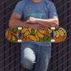 Roll into retro with this bold 1970s-inspired floral skateboard! Featuring groovy orange, mustard, olive, and beige blooms with a vintage textured finish, this deck is made to stand out. Perfect for skating in style, decorating a wall, or giving as a unique gift to vintage lovers and free spirits. Whether you’re hitting the pavement or just vibing, this board brings the flower power.
