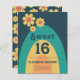 Celebre seu décimo sexto aniversário com este retrato legal dos anos 60 e 70, cores hertáceas laranja aqua mostarda amarela azul arco-íris 16. Com simples design de margarida e modelos fáceis de usar, este convite personalizado define o que é visto para uma legal festa de garotas hippie. Arte original da artista Catherine Sweetman